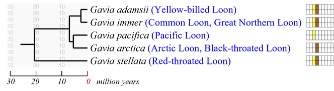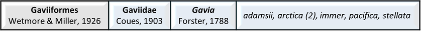 The taxon is represented by ~5 species in the genus Gavia, family Gaviidae.